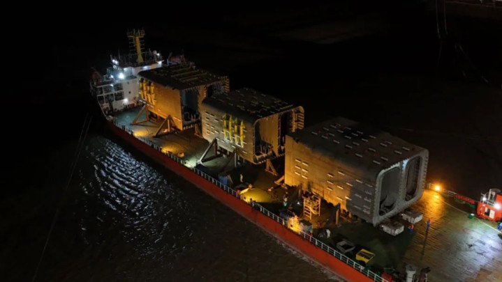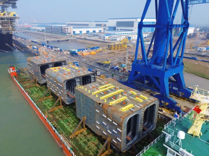近日最好的股票配资,中远海运物流供应链承运的韩国现代重工特里恩浮式生产储卸油装置M034模块项目首批船体分段于启东中远海运海工码头顺利完成发运。